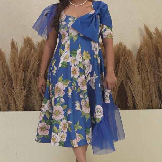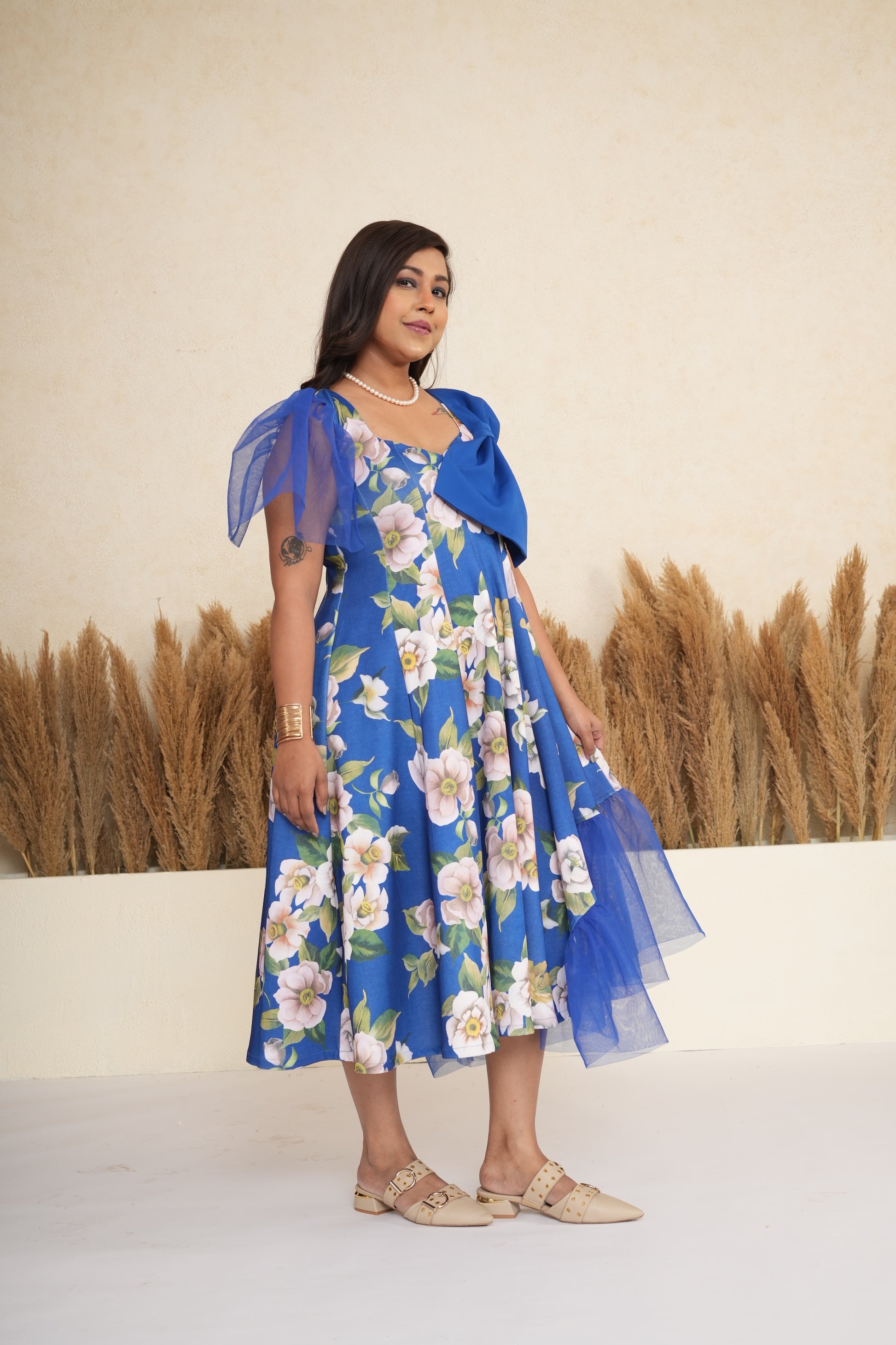 Vibrant Floral Print: Set against a striking cobalt blue backdrop, the high-definition floral pattern adds a sophisticated, feminine touch.