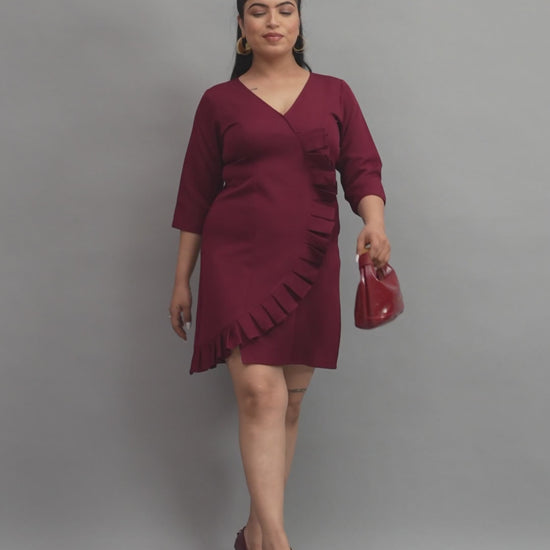 mehroon Ruffle Wrap Mini Dress